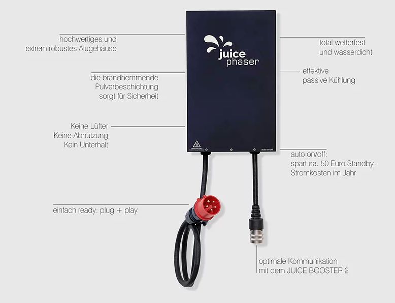 • Völlig sicher: Keine Gefahr von unzulässigen Schieflasten im Stromnetz dank dem JUICE PHASER