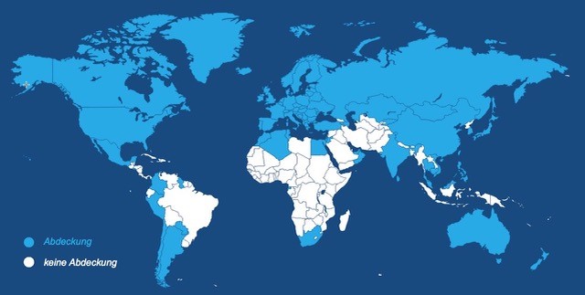 Die Nutzungsgebühren enthalten eine Flatrate für die SIM-Datenübertragung in den im Bild ( unter Download ersichtlich ) angegebenen Ländern mit Abdeckung.